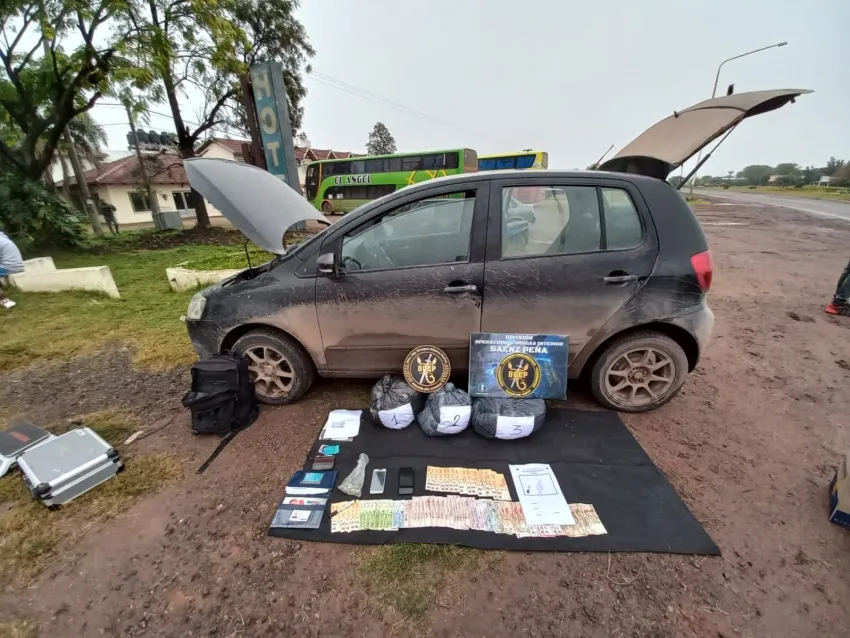 Al momento que se va el otro coche, los agentes se acercaron a los del auto negro, identificado como Volkswagen Fox, quienes al verlos comenzaron a escapar. Al poco tiempo fueron detenidos en la intersección de la Ruta 16 y la calle Uruguay.