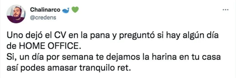 "Uno dejó el CV en la panadería y preguntó si hay algún día de home office", contó en su publicación sobre la pregunta.