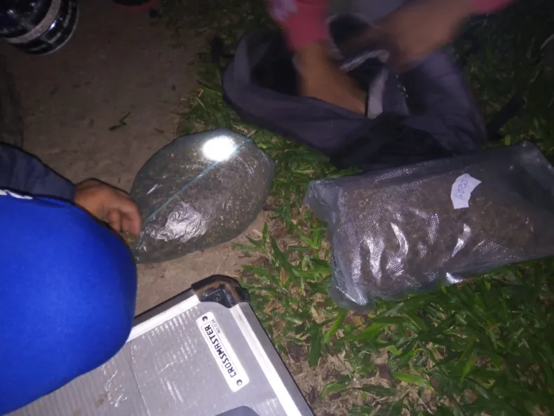 Seguidamente, los agentes optan por acercarse, pero al notar la presencia policial los sospechosos pretenden darse a la fuga. Uno de ellos, lo logró dar con su cometido y fue detenido a los pocos metros. En su poder, llevaba una mochila donde al ser requisado los policías verificaron que en el interior transportaba cogollos de marihuana dando un peso total de 1,499 gramos. También se le secuestró dos mil pesos, un celular y una moto marca Yamaha XTZ 125 cc.