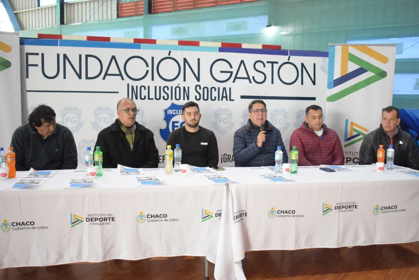 Gustavo Martínez, junto con el presidente de la fundación Gastón, Rubén de los Santos y el titular del Instituto del Deporte Chaqueño, Osvaldo Pérez Cuevas, presentaron la "Copa Gastón", torneo de fútbol para jóvenes de las clases 2010 a 2016 que se disputará del 24 al 26 de junio próximo en las canchas de avenida Belgrano y calle Caracas, donde funciona la entidad.