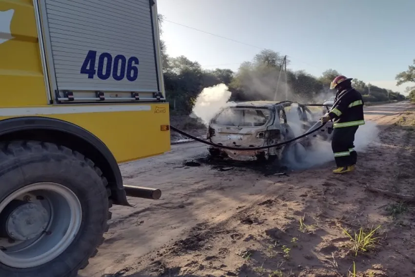 Este martes por la tarde, en un camino vecinal de la localidad de Miraflores, un automóvil se prendió fuego y los Bomberos debieron acudir a sofocarlo.
