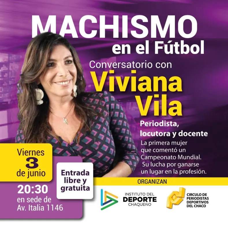 El día viernes 3 de junio y en la sede del Círculo de Periodistas Deportivos, ubicado en Avenida Italia al 1146 se realizará una charla abierta que llevará la temática de "Machismos en el fútbol". La misma, se efectuará mediante la periodista y locutora Viviana Vila,la primera mujer que comentó en un Mundial de Fútbol.
