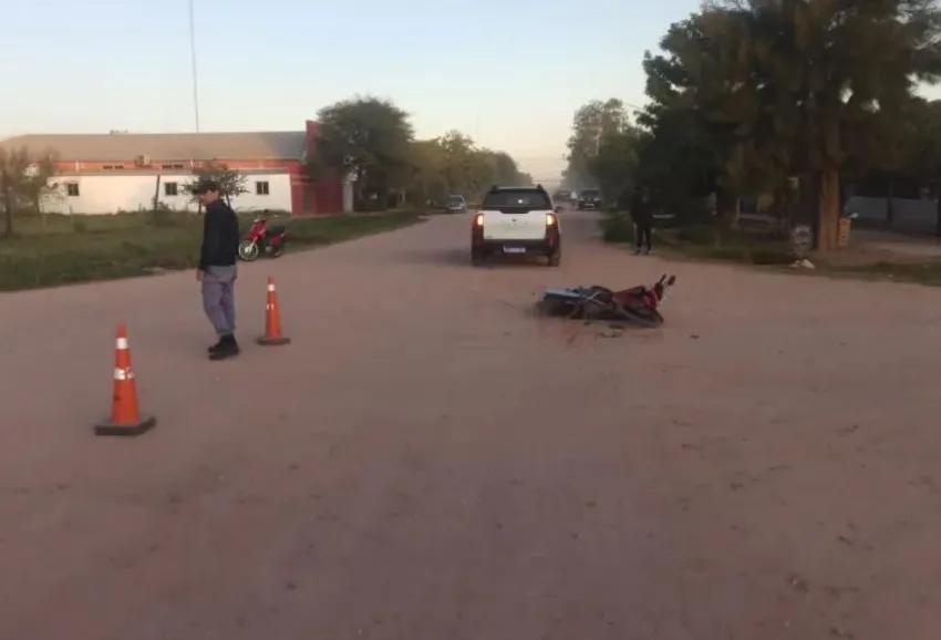 Un auto Renault Oroch blanco y una moto 110 roja colisionaron ayer a la tarde en la intersección de avenida 2 de Febrero y calle Santa María de Oro de Juan José Castelli. Fuentes policiales informaron que los ocupantes de la moto fueron trasladados al hospital local.