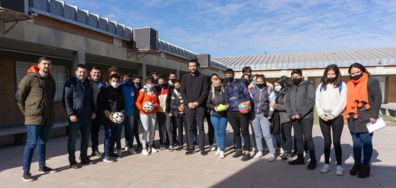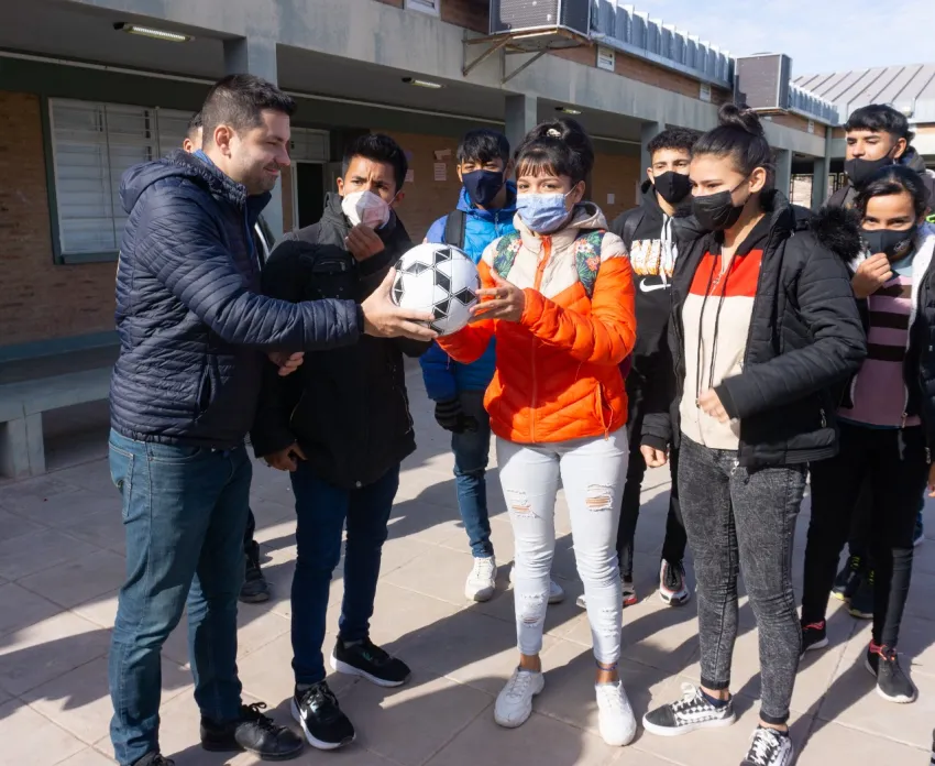 Los profesores y alumnos de la Escuela Secundaria N° 143, Luis Borges, del barrio San Cayetano, recibieron la visita del intendente de Sáenz Peña, Bruno Cipolini, quien hizo entrega de pelotas de fútbol, vóley, hándball y demás elementos deportivos para la institución.