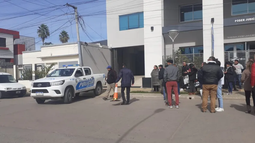 Minutos después salió custodiado el culpable que fue increpado por uno de los familiares al grito de asesino, también sufrió agresiones verbales el abogado defensor Daniel Burlli.