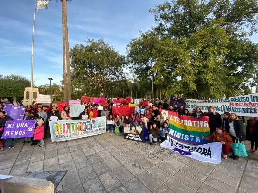 Integrantes de distintos movimientos se convocaron en la Plaza San Martin de la ciudad termal para recodar un año más de este movimiento. Varias fueron las mujeres que dejaron un menaje en el acto, entre ellas la concejal Luisana Lita, Carla Coronel y karen Zaracho,Marian Galeano activista por la diversidad y Género, Micaela Mancuello militante de Alternativa Feminista, Armando Redes y agente territorial de Derechos Humanos, la dirigente Lorena Palacios quienes felicitaron a las mujeres por haberse sumado a esta marcha y por levantar su voz en contra de la violencia.