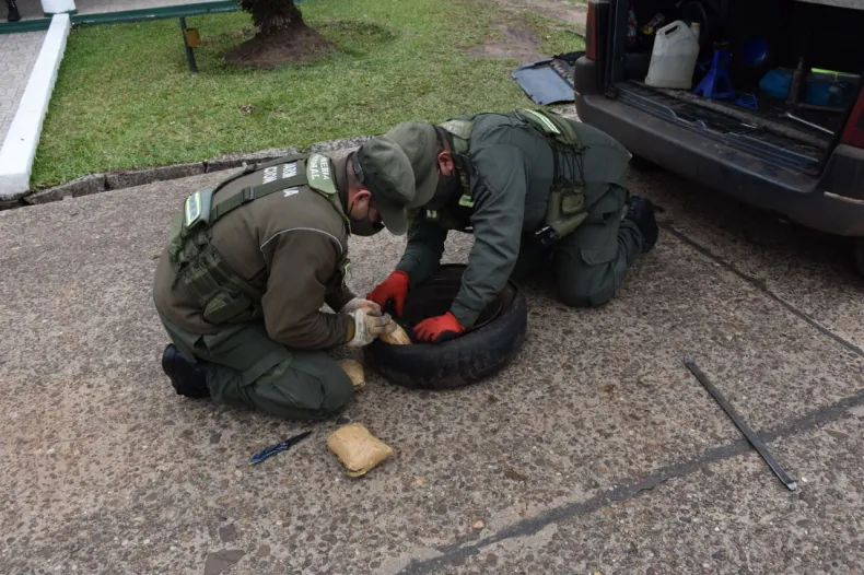 Tras encontrar esos embutidos, se trasladó el vehículo a la Unidad y comenzó una pesquisa que sorprendió a los gendarmes: en el piso, en los paneles laterales, en la rueda de auxilio y en el torpedo también había paquetes.