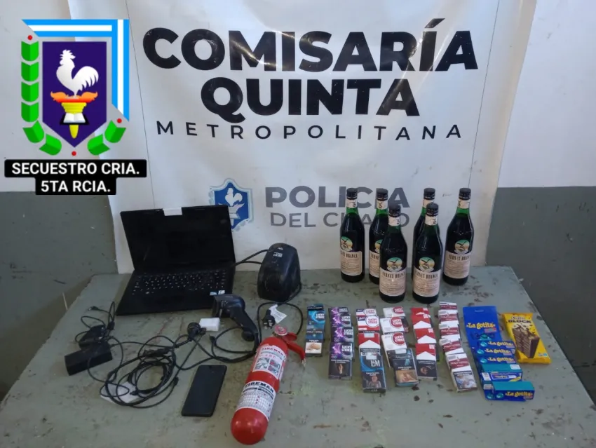 Los efectivos de la comisaría quinta fueron al domicilio del sujeto y lo detuvieron con varias botellas de fernet, pegamentos, un chocolatín, cajas de cigarrillos de variadas marcas, una notebook, un lector de precios, además de un cargador de celular y pc.