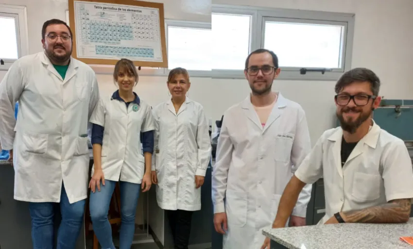 Dra. Farm. López Tévez, Libertad Leonor; Dr. Farm. Martínez, Medina, Juan José; Dra. Ing. Okulik, Nora Beatriz; Licenciada Guevara, Lorena Elizabeth; Farm. Rodríguez, Javier Luis; Farm. Bertiche, Ezequiel Leandro; Farm. Falkievich, Dana Belén, y los estudiantes de la carrera de Farmacia de la Universidad, Martínez Medina, Miguel y Luna, Carla.
