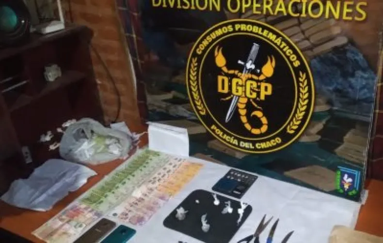 Allí, lograron secuestrar cuatros bochitas que contenían 5,5 gramos de cocaína y tres envoltorios con un total de 8,5 gramos de marihuana. También una tijera, dos cuchillos, recortes de varios de polietileno y la suma de 5.500 pesos.