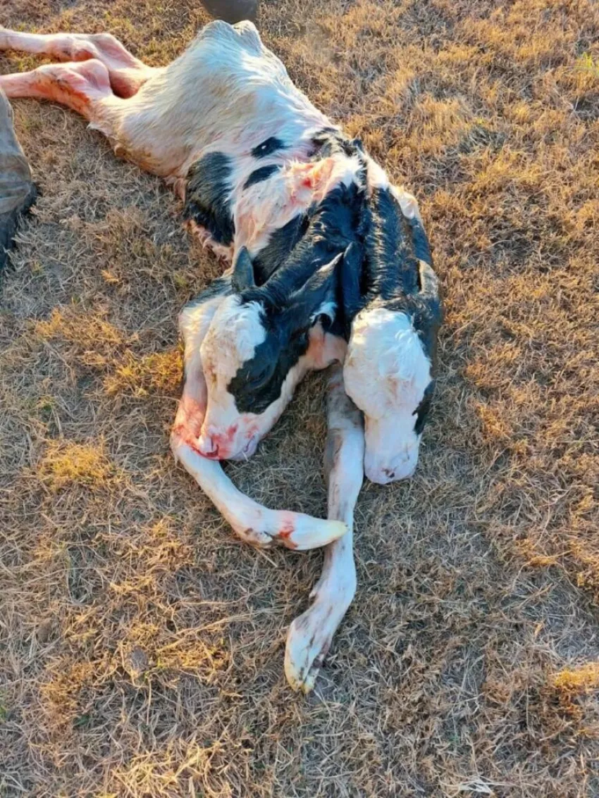 En la localidad cordobesa La Palestina nació un ternero con dos cabezas que murió a los pocos minutos al igual que su madre, quien sufrió graves lesiones durante el parto y falleció dos días después.