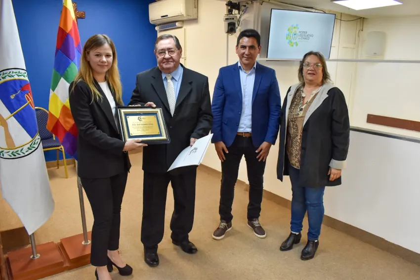 El homenaje se realizó en el recinto de Sesiones junto a familiares y amigos, donde los legisladores destacaron sus logros profesionales a lo largo de casi cincuenta años, concluyendo en la entrega de placa y carpeta protocolar a este periodista saenzpeñense, como reconocimiento de toda la actividad que desarrolló en los medios de comunicación.