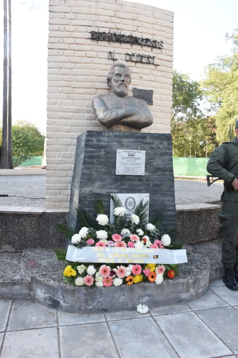 El acto tuvo lugar en el busto del general Martín Miguel de Güemes que se encuentra en plaza San Martín, y contó con la presencia del presidente del Concejo Deliberante, Pedro Egea, en representación del intendente Bruno Cipolini; el secretario de Relaciones  Institucionales, Juan Fuentes Catillo; la concejal Nora Gauna; el Comandante Mayor Gerardo Rodolfo  Benítez, del Comando de Región VIII de Gendarmería Nacional; el  Comandante Principal Rodolfo Pellerano, del Escuadrón 1 de Gendarmería, demás concejales y funcionarios del Municipio.