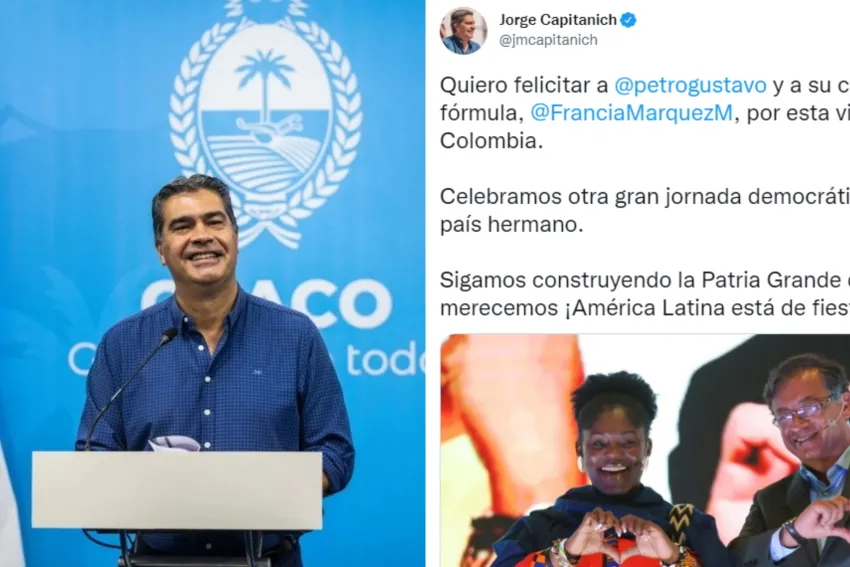 El gobernador, Jorge Capitanich, saludó en redes sociales al recientemente electo presidente de Colombia, Gustavo Pedro, y la vicepresidenta, Francia Márquez.
