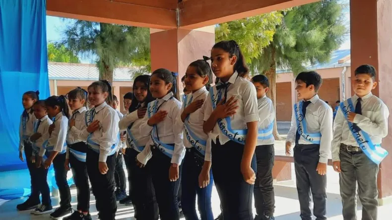 El director de la Regional Educativa II Adrián Bordón realizó la toma de juramento a los alumnos de 4° Grado que prometieron Lealtad a la enseña Patria que fuera creada por Manuel Belgrano.