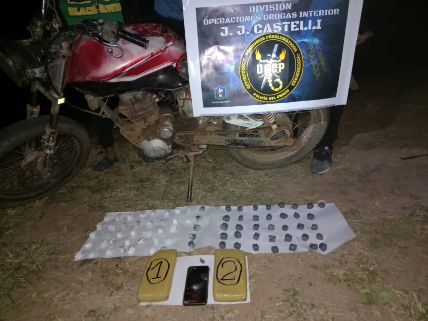Efectivos División Operaciones Drogas de Juan José Castelli, desplegaron en la noche del martes, un operativo de control antinarcóticos sobre Ruta 95 en cercanías a una estación de servicios de esa ciudad, es así, que alrededor de las 22, observaron una motocicleta color negra marca Zanella de 150cc. que se acercaba al puesto de control.