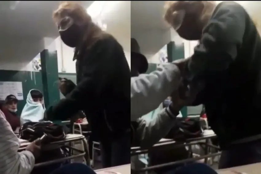 El tenso cruce fue grabado y se viralizó en las redes sociales. El video, de poco más de 40 segundos, comienza con la educadora retando al adolescente por estar usando el celular en clase. Cuando intentó quitárselo, se produjo un forcejeo. Finalmente, la profesora desiste de sacarle el dispositivo.