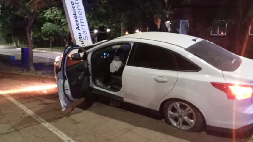 En las primeras horas de la mañana de este domingo, un automóvil Ford Focus perdió el control y terminó impactando sobre un cartel de la Avenida Sarmiento y Laprida.