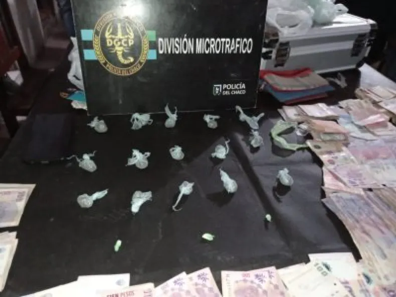 Tras inspeccionar la vivienda encontraron envoltorios con una sustancia blanca, que resultó ser cocaína con un peso de 0,3 gramos, además varios envoltorios con marihuana con un peso de 17 gramos, recortes de envoltorios de nylon, un teléfono celular y la suma de $122.850.