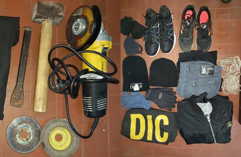 Finalmente, como resultado de uno de los allanamientos dispuestos por el Juzgado de Garantías N°4, con intervención de la Fiscalía Nº2, se procedió al secuestro de $490.00 pesos correspondientes a una parte del dinero denunciado como sustraído y elementos de interés en la causa: dos cuerdas, una escalera, un corta hierro, una amolador, prendas de vestir de color oscuro, dos pares de guantes y 5 celulares, entre otras herramientas nuevas como dos destornilladores inalámbricos, tres taladros percutores, cinco motores de desmalezadoras y un grupo electrógeno. Además, se incautó una camioneta Kangoo marca Renault.