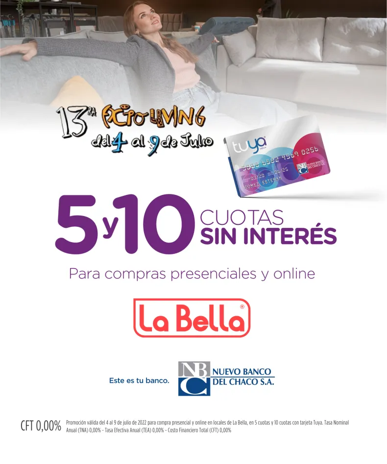 Nuevo Banco del Chaco acompaña en una nueva edición de Expo Living de La Bella para fortalecer la industria chaqueña, con descuentos y promociones con Tarjeta Tuya en la muestra comercial que se realizará del 4 al 9 de julio en los locales de Resistencia, Puerto Tirol y Corrientes.