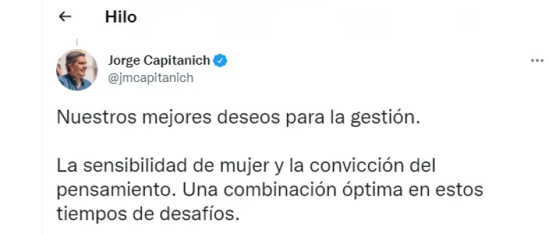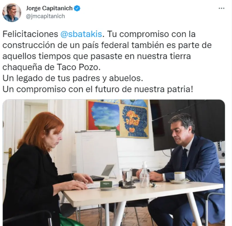 Tras el anuncio de su cargo, Capitanich felicitó en redes sociales a Silvina Batakis