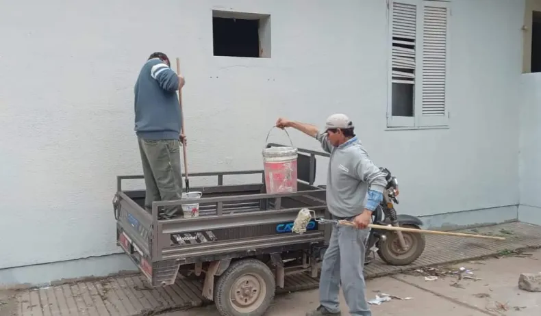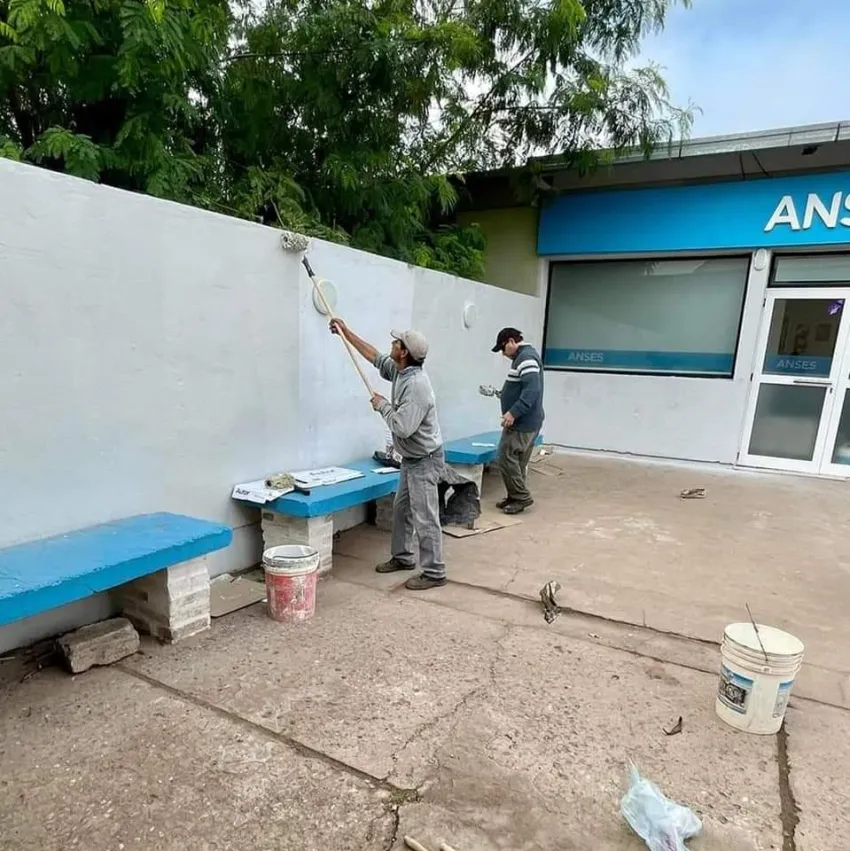 Durante el fin de semana, el personal de Relaciones con la Comunidad de la municipalidad de Castelli realizó trabajos de pintura y refacción en las oficinas de la UDAI Anses.