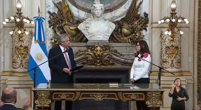 El presidente, Alberto Fernández fue quien llevó a cabo el juramento de la nueva ministra, mientras que a su vez distintos legisladores y ministros del Frente de Todos también dijeron presente.
