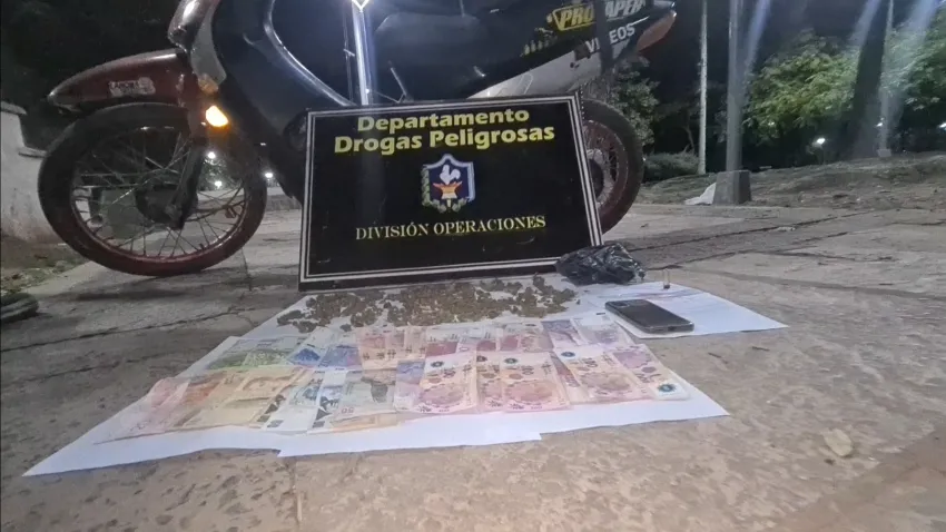 En este marco, tomó acción la Fiscalía Antidrogas N°1 disponiendo el secuestro de la sustancia junto con el celular que posee y dinero en efectivo por la suma de $3.910 y la motocicleta en la que se desplazaba, notificando a esta persona la infracción a la ley N° 23737 en función de Ley Provincial 2304-N de Narcomenudeo.