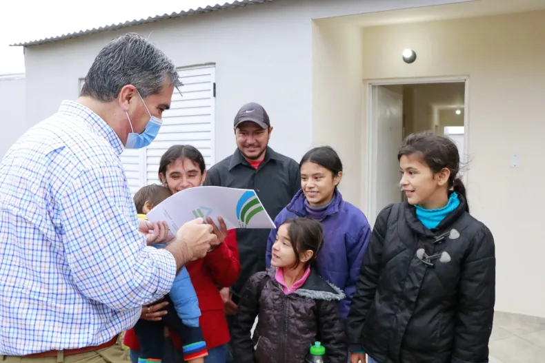 "Ustedes hoy, no solamente van a vivir mejor sino que van a tener un legado para sus hijos, en base a su esfuerzo y su trabajo", destacó el mandatario, acompañado del titular del Instituto Provincial de Desarrollo Urbano y Viviendas (IPDUV), Diego Arévalo, el ministro de Planificación, Economía e Infraestructura, Santiago Pérez Pons y la intendenta de la localidad, Alba Sánchez.