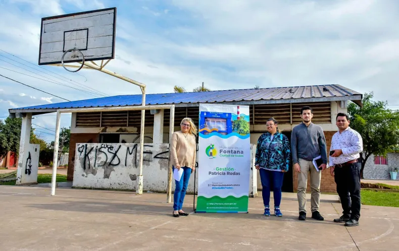 La intendenta de Fontana Patricia Rodas recorrió los barrios 444 y 506 Viviendas para anunciar el inicio de obra de los playones deportivos correspondientes a cada uno. Las obras se enmarcan dentro de un plan general de restauración de espacios deportivos y de recreación.