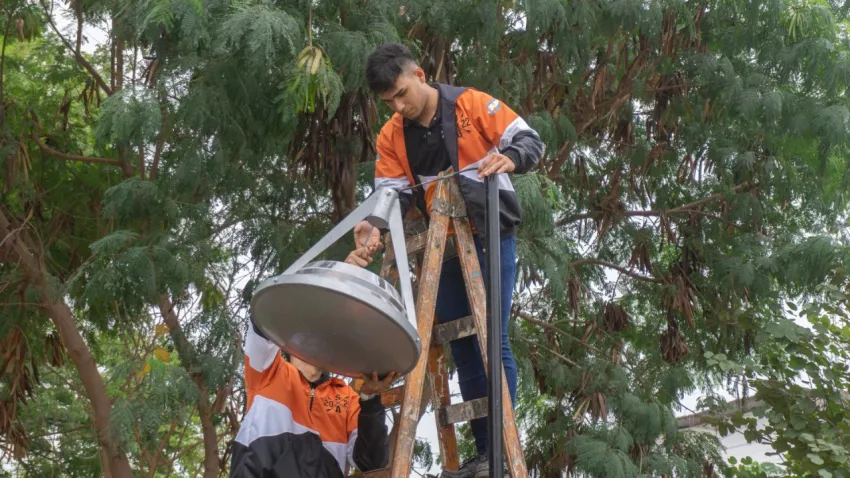 Con aportes del municipio, alumnos refaccionan las luminarias exteriores del Colegio Industrial