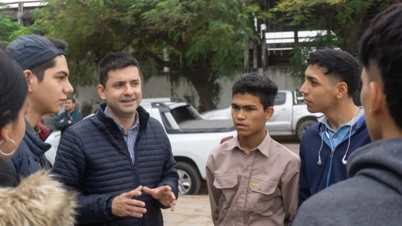 El intendente Bruno Cipolini visitó el colegio secundario E.E.T N°22 "Teniente Benjamín Matienzo" donde los alumnos del último año de electricidad, bajo la supervisión del personal de electrotecnia del municipio y sus profesores, refaccionan las luminarias exteriores del establecimiento.