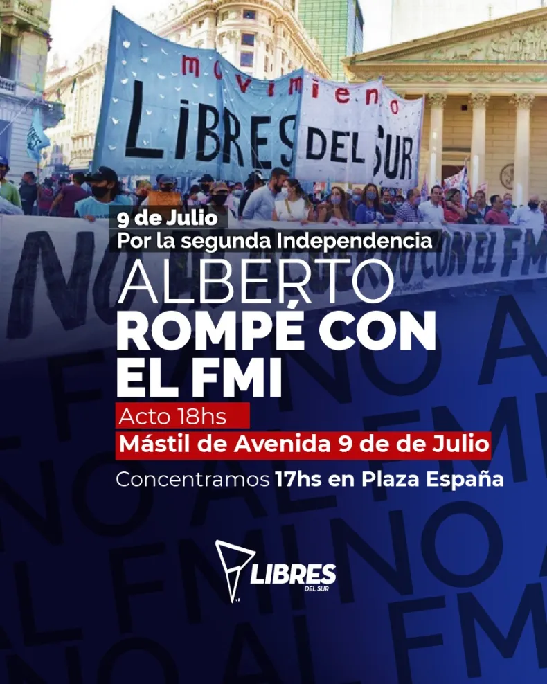 Libres del Sur realizará un acto por el 9 de julio bajo la consigna "Alberto rompé con el FMI"