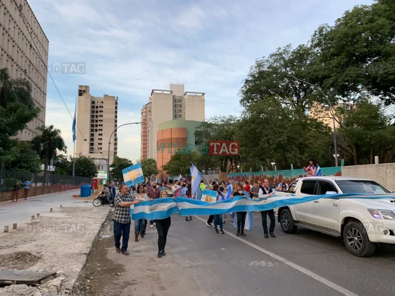 La movilización comenzó pasadas las 17 y fue por la calle Güemes hasta llegar a Don Bosco, donde dobló en dirección a la plaza 25 de mayo. Se cantó el himno dos veces.