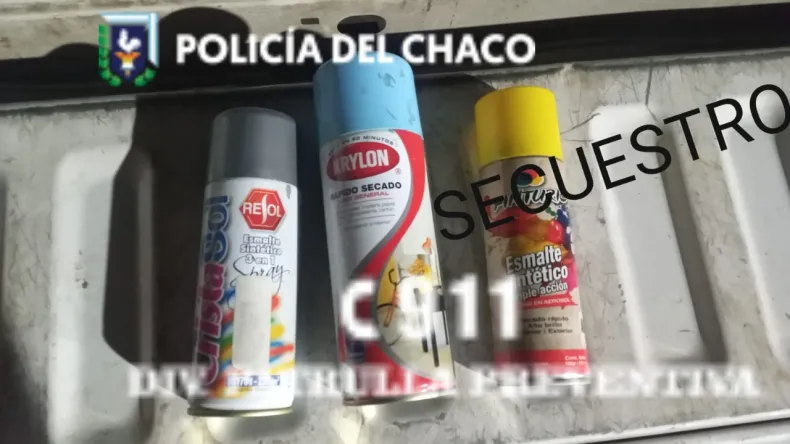 De inmediato dieron intervención a los móviles de la División Patrulla Preventiva, que se hicieron presentes y lograron demorarlos, como asimismo incautar las latas de pintura en aerosol con las que habían escrito "EN LA LONA".