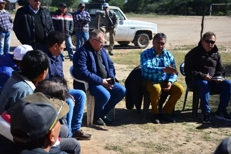 El intendente Pio Sander junto a la Secretaría de Producción Jessica Kloster participaron de una importante reunión en el Paraje Pampa Argentina, la misma contó con la presencia del presidente de IDACH Miguel Iya Gómez, y el intendente de Villa Río Bermejito Julio Paredez.
