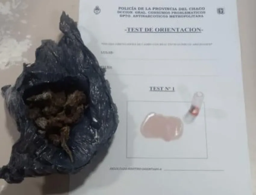 Por tal motivo solicitaron la colaboración del personal de Drogas quienes una vez en el lugar realizaron la prueba de campo, arrojando como resultado marihuana, con un pesaje de 15,7 gramos.