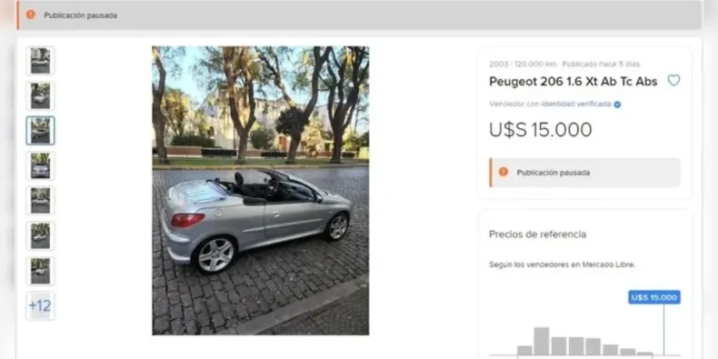 Según explica Ariel, el vendedor, este Peugeot modelo 206 Coupé Cabriolet tiene 120 mil kilómetros, fue traído de España, tiene 19 años de antigüedad y es el único en el país con caja automática y motor 1.6. El precio es de 15 mil dólares.