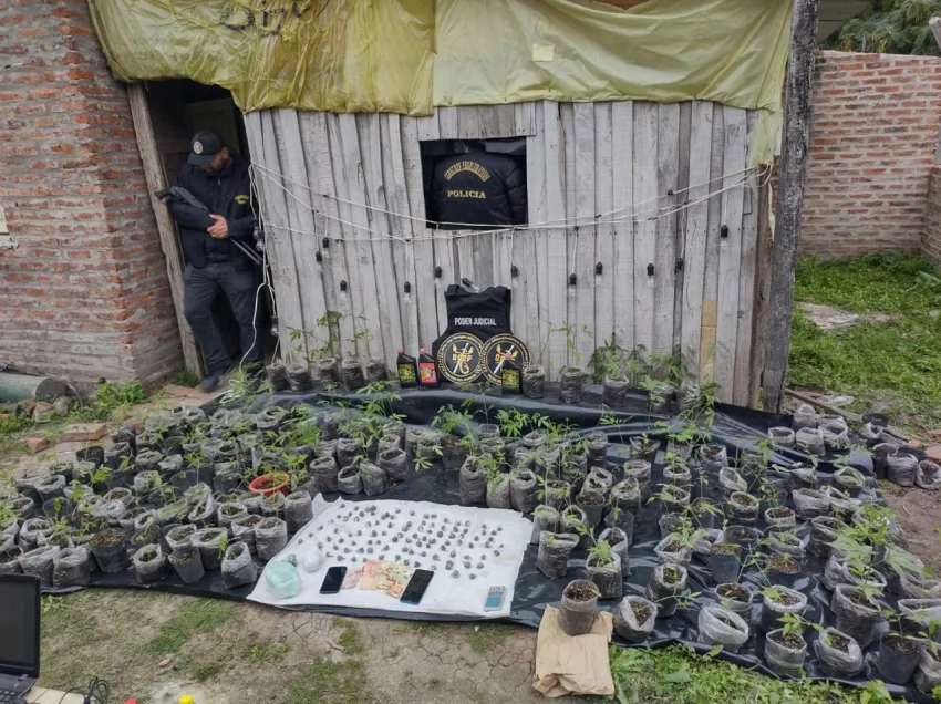 Este viernes la División Operaciones Droga Interior realizó dos allanamientos, incautó 113 gramos de cocaína, 179 plantas de cannabis, más de 27 mil pesos y un revolver, mientras que un hombre fue detenido.