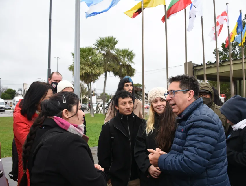 El acto se inició con el izamiento de las banderas de los países que representan a los escultores visitantes, con el acompañamiento musical de las bandas de la Policía del Chaco y del Ejército Argentino.