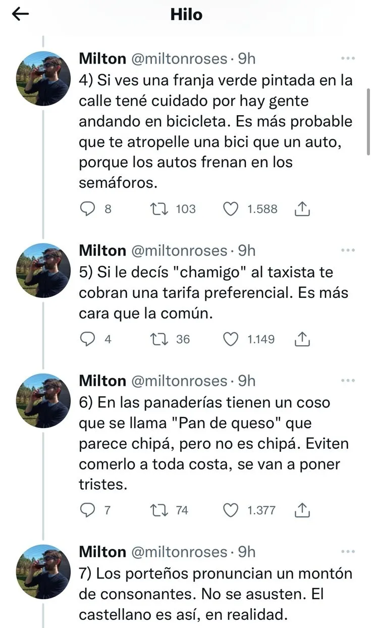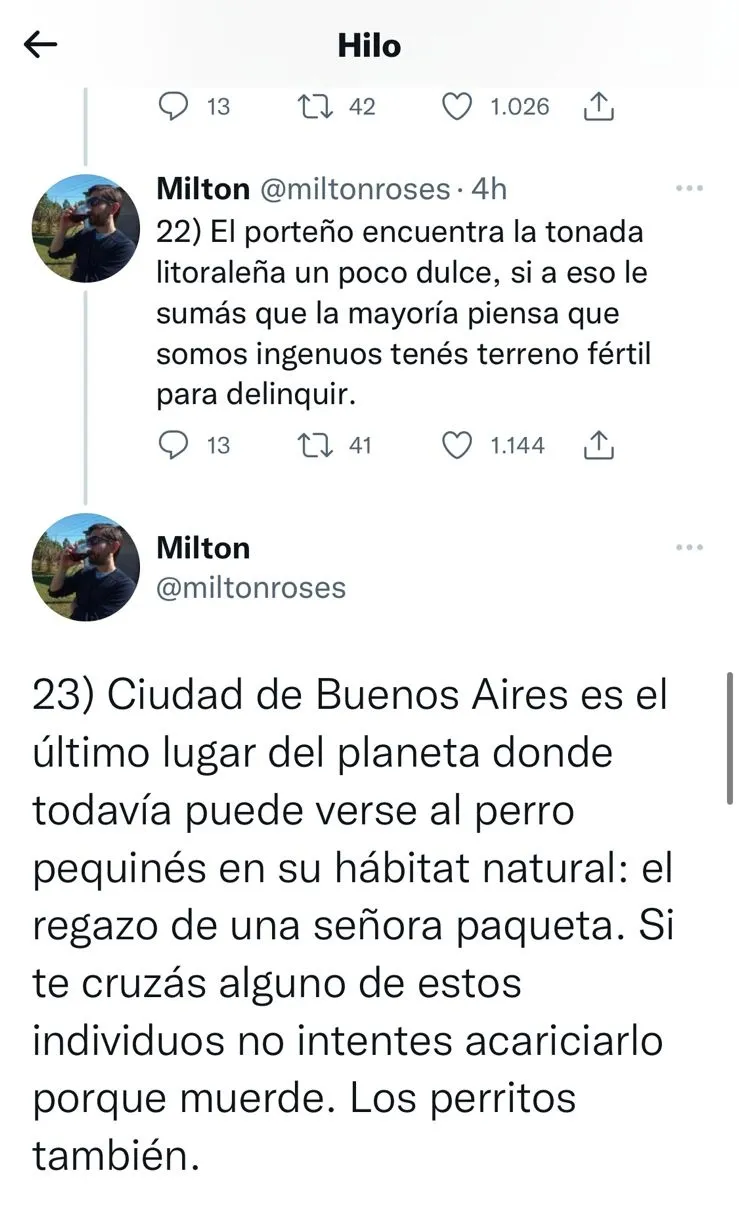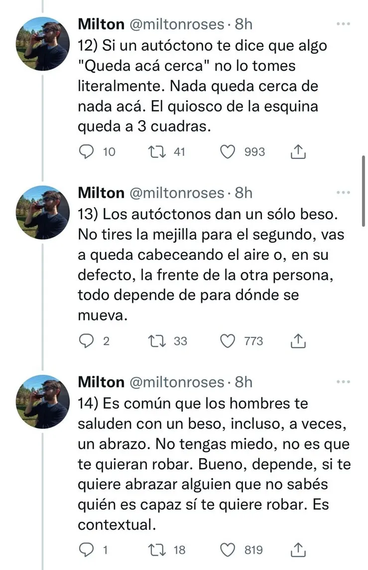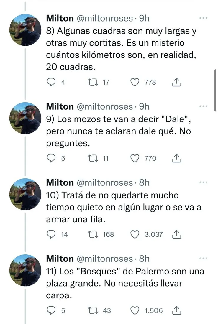 @miltonroses, quien se presenta como aficionado al teatro y la literatura, es el creador del famoso hilo y fue quien llegó a CABA de visita.