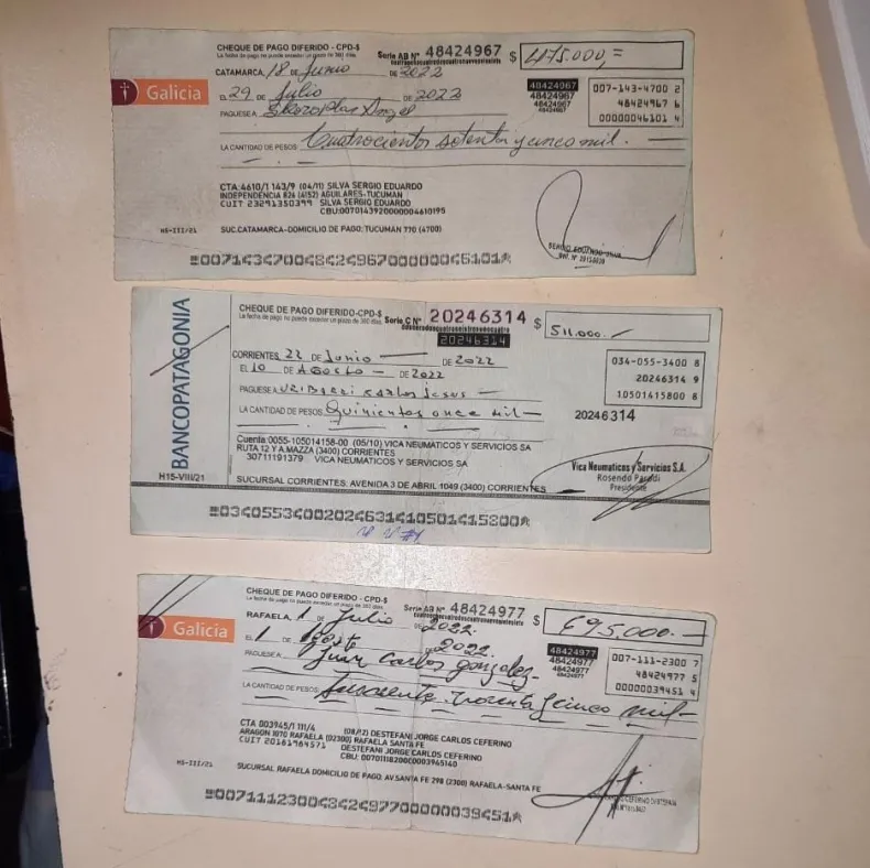 Durante la detención de los hombres, los uniformados encontraron más cheques falsos que sumaban un total de 900 mil pesos.
