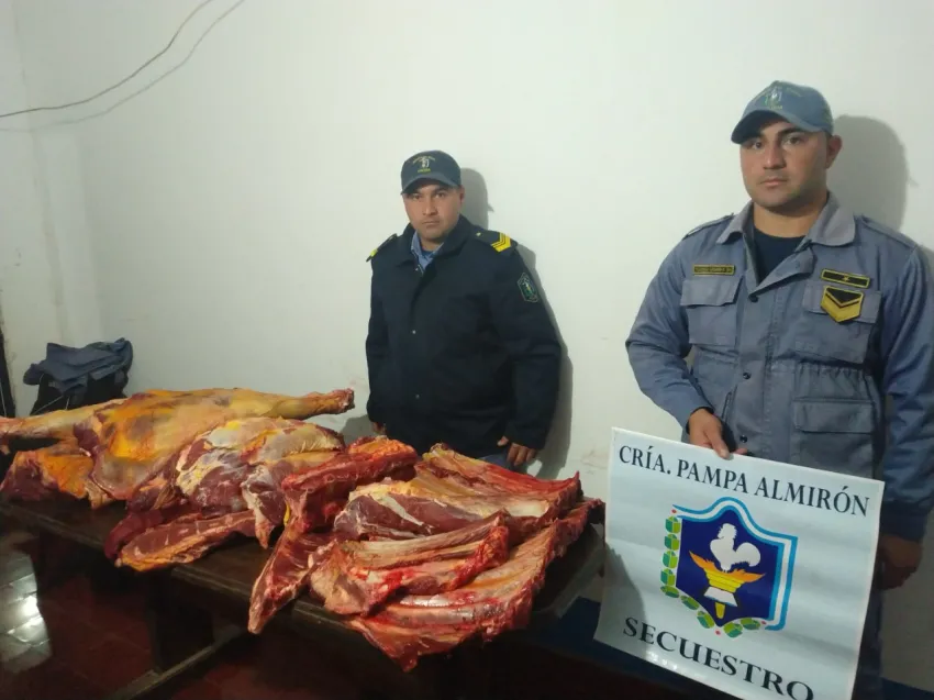 En la noche del martes, agentes de la Comisaria Pampa Almirón secuestraron más de 100 kilos de carne de un local en el barrio Santa Lucia de esa localidad. Acudieron al lugar luego de un llamado en el cual denunciaron que la carne era de "dudosa procedencia".
