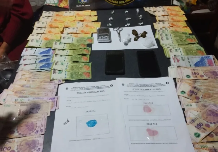 En el lugar estaba un hombre de 27 años que quedó detenido en la sede policial y secuestraron 9 envoltorios de cocaína, 4 gramos de marihuana, 37.440 pesos y una balanza de precisión.