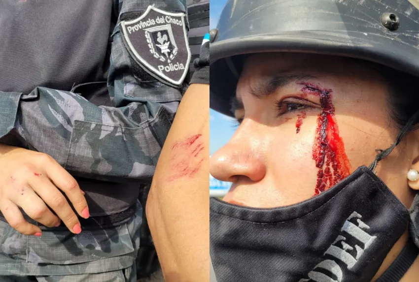 Fue así que tuvo que intervenir el personal de la División Infantería con el camión hidrante y generar el despeje de la ruta, situación que provocó el enojo de los manifestantes y comenzaron arrojar elementos contundes hacia los policías. Esos proyectiles impactaron en la humanidad de varios agentes que finalmente resultaron heridos, algunos con cortes en el rostro.