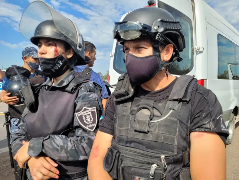 Por el corte y desalojo que se produjo en Ruta 11 no hubo manifestantes detenidos. Hay varios policías que terminaron con heridas y cortes en el rostro.