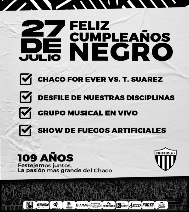 Desde For Ever anticipan en el marco de los 109 años de su fundación. El club anunció en sus redes sociales una gran fiesta con un desfile especial de todas las disciplinas, habrá música en vivo con distintos grupos locales, y se cerrará la jornada con un gran show de fuegos artificiales.