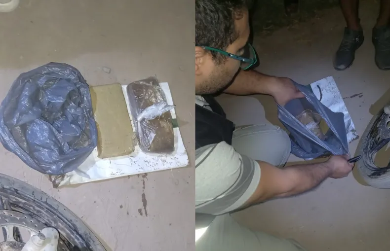 Seguidamente, los agentes procedieron a requisar a los ocupantes de la moto cuando en un momento determinado encontraron que el conductor tenía entre sus prendas dos envoltorios de forma rectangular tipo ladrillo. Pidieron la presencia de un testigo hábil y al abrir el envoltorio se encontraron con que era marihuana, arrojando un peso total de 1 kilo 100 gramos.