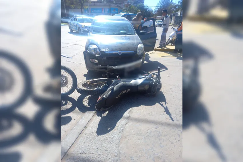 El accidente de tránsito que pudo ser fatal se registró en el mediodía de ayer en la intersección de las avenidas San martín y Castelli, cuando una mujer a bordo de un vehículo color negro chocó a un motociclista e intentó darse a la fuga.